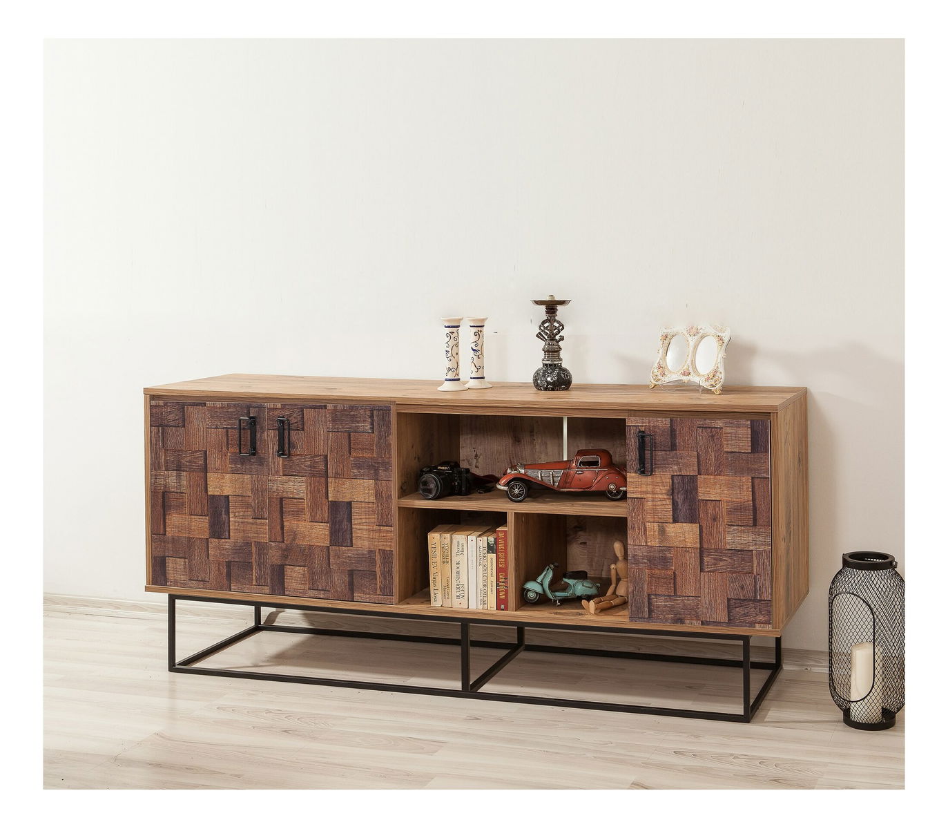 debljina: 18 mm, metalni okvir (debljina: 1,5 cm,) vrata veličina: širina: 180 cm, visina: 80 cm, dubina: 40 cm, visina nogu: 22 cm, visina police: 23 cm