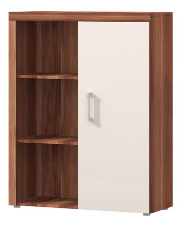 Manji praktičan ormarić u kojem dominira boje šljive. Front vrata je u boji grafita. Lijevi dio ima otvorene police, a u desnom dijelu se nalaze vrata.
