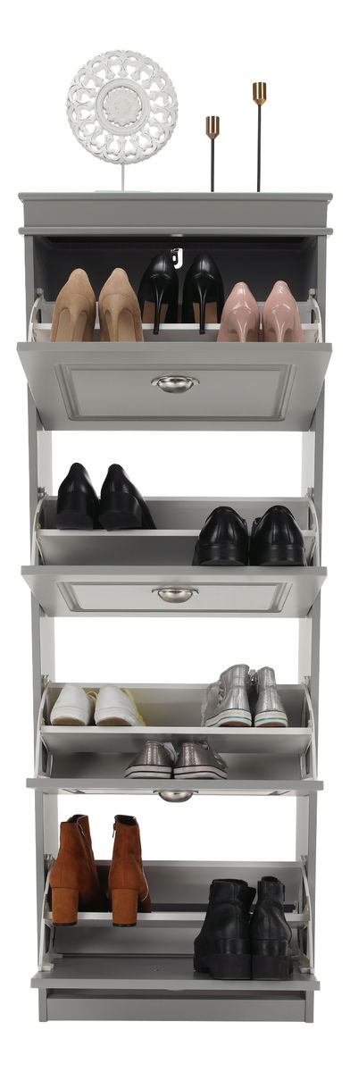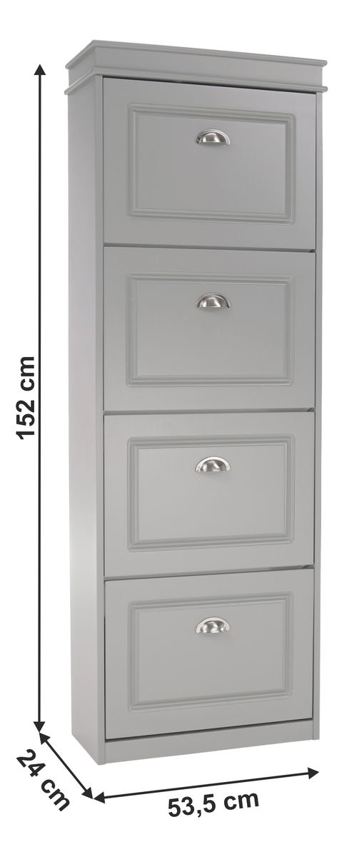 Rustikalni dizajn, ukrašen dizajnerskim ručkama. Ona pruža dovoljno prostora za odlaganje u obliku četiri zglobne ladice, koji je pogodan za 16 pari cipela.