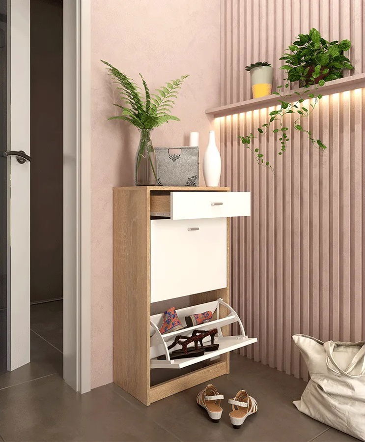 Ormarić za obuću Kerjat Typ 1 (bijela+ hrast sonoma)