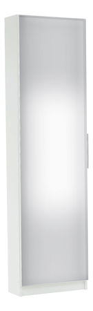 Elegantan jednostavan ormarić za obuću koji ima 6 redova. Ormarić je bijele boje i ima ogledalo na vratima.