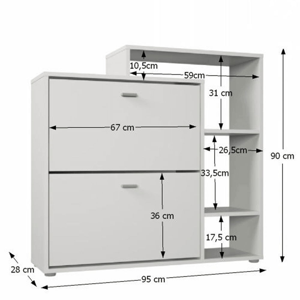 Ormarić za obuću univerzalne boje. Ako vam ne odgovara smještan na desnoj strani, možete ga montirati na lijevu stranu.