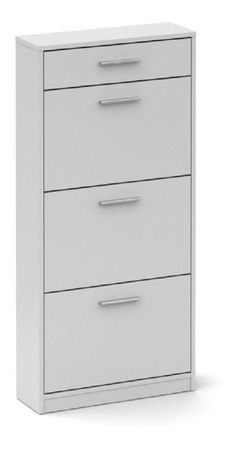 Ormarić za obuću s 3 vrata i jednom ladicom u bijeloj boji. Materijal je laminirana ploča od iverice.