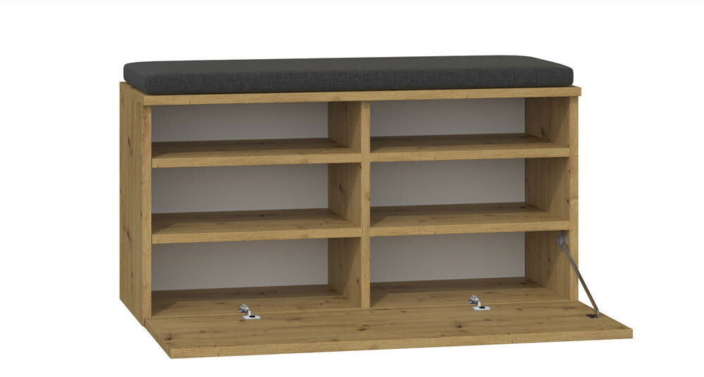 PrikazOrmarić za obuću Reclemos 1 moderan je komad namještaja koji kombinira eleganciju i funkcionalnost, idealan za svaki dom. Njegov dizajn u nijansi hrasta artisan prostoru daje topao i ugodan izgled. Ormarić za cipele izrađen je od kvalitetne laminirane iverice debljine 16 mm, otporne na ogrebotine, što jamči dug vijek trajanja. S praktičnim vratima s ručkama i šest polica nudi dovoljno prostora za pohranu obuće, dok sjedalo na vrhu povećava udobnost pri obuvanju. Ovaj ormarić izvrstan je izbor za one koji traže stilsko i praktično rješenje za svoj interijer.