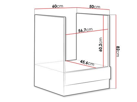 Ormarić ispod pećnice idealan je izbor za one koji traže udobnost i stil. Dimenzije: širina: 60 cm, visina: 82 cm, dubina: 50 cm Izrađen: korpus: iverica laminirana – boja: siva, vrata: MDF ploča obrubljena PVC-om, metalne ručke, sustav tihog zatvaranja, radna ploča nije uključena u cijenu, u ormarić pristaje radna ploča duljine 60 cm – s mogućnošću dodatne kupnje radne ploče Jamstveni rok: 24 mjeseca.