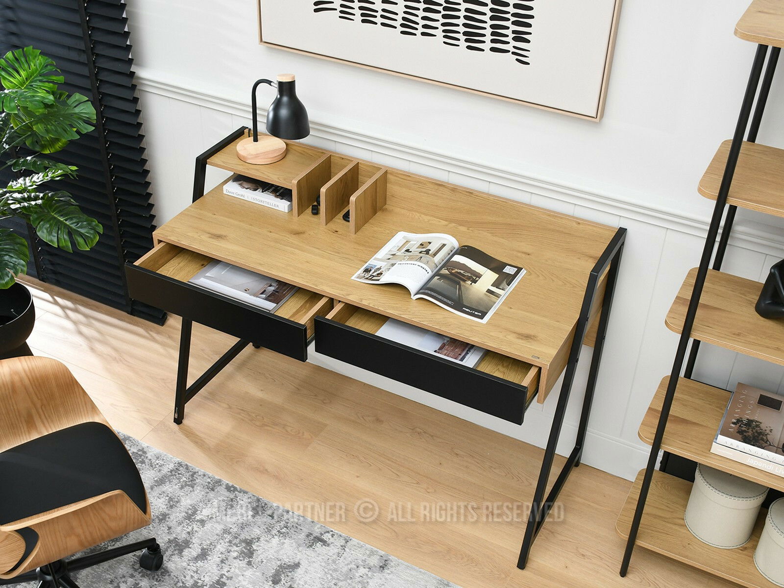 PC stol Rigielo (crni hrast + crna)