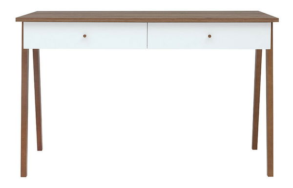 Moderan PC stolić s 2 ladice koje imaju drvene ručke.
