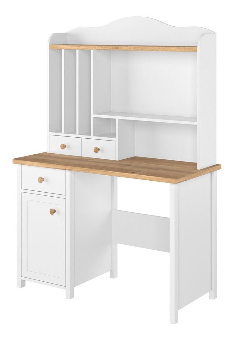 PrikazPisaći stol Kos KS-03 + idealan je izbor za one koji traže udobnost i stil. Dimenzije: Pisaći stol Kos KS-03: širina: 110 cm, visina: 76 cm, dubina: 52 cm. Nadogradnja Kos KS-04: širina: 107 cm, visina: 85 cm, dubina: 20 cm. Boje: mogućnost izbora boja ovdje. Izrađen od: korpus i vrata – laminirana iverica, rubna traka papirna, stražnja strana od vlaknatih HDF ploča 3 mm, metalne šarke, plastične okrugle ručke, vodilica kuglična, tip podloge: protuklizna podloga. Jamstveni rok: 24 mjeseca.