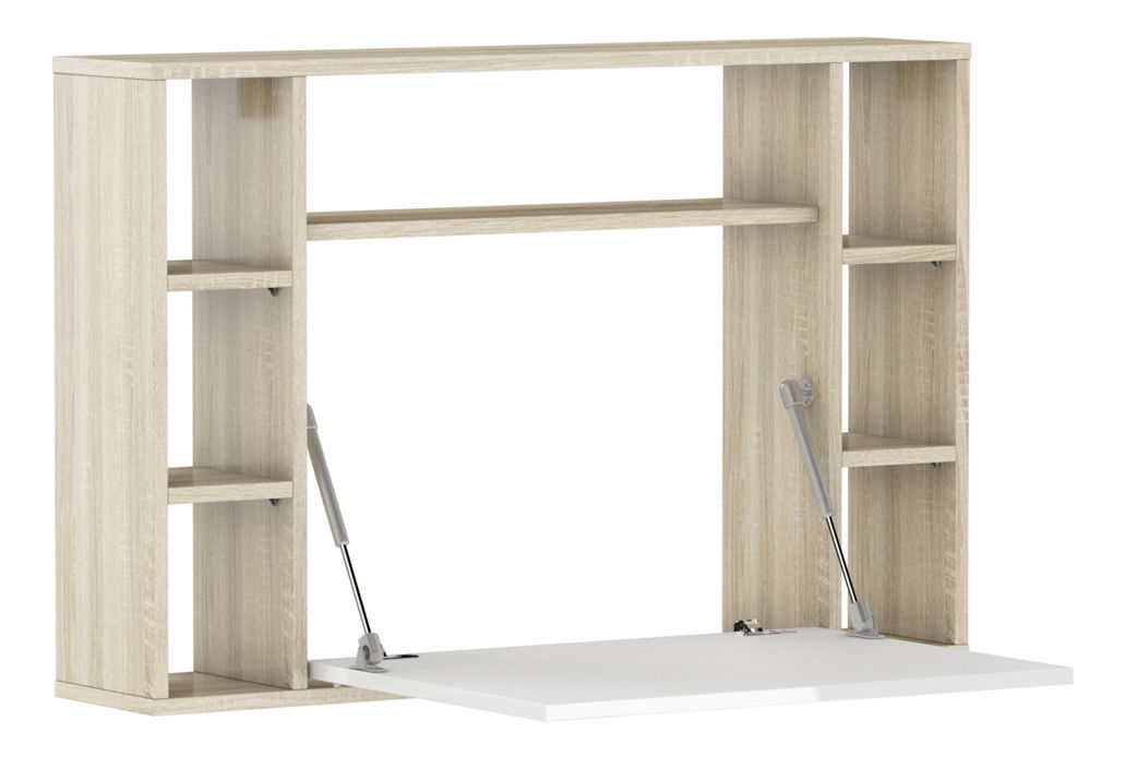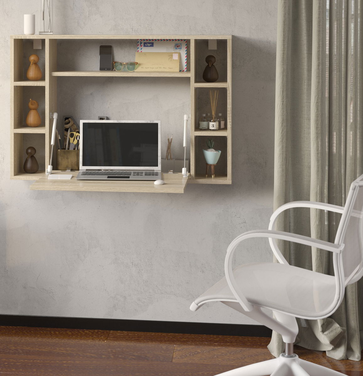PrikazVrlo praktičan i elegantan viseći stol. Ima praktičnu preklopnu ploču, idealnu za prijenosno računalo ili dokumente. Kada se sklopi, stol se pretvara u kompaktni ormarić s policama s čak sedam pretinaca za sitnice. Pogodan je za ured ili radnu sobu, ali i za dnevni boravak ili sobu za mlade.