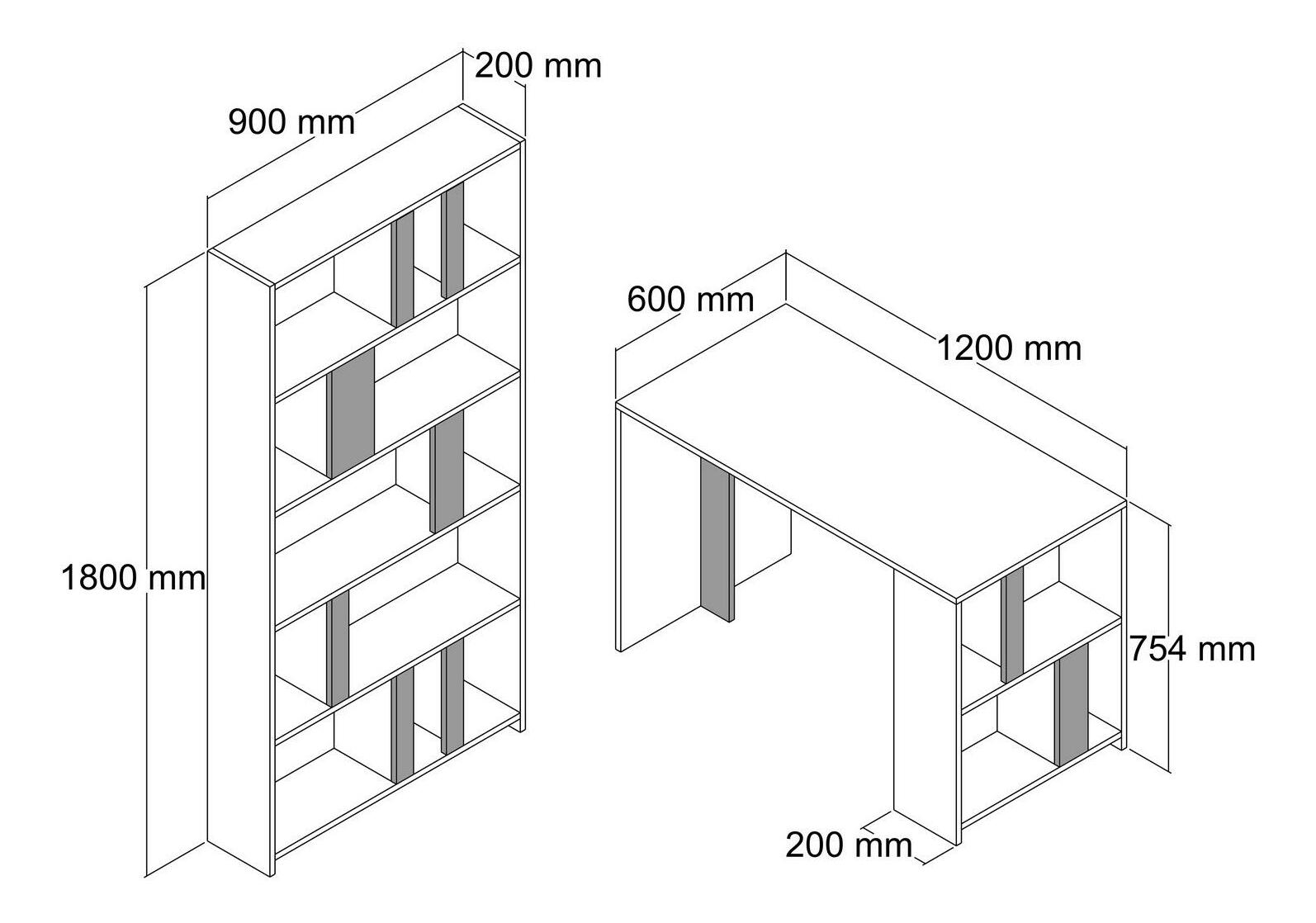 debljina: 18 mm, veličina stola: širina: 120 cm, visina: 75,4 cm, dubina: 60 cm, veličina police: širina: 90 cm, visina: 180 cm, dubina: 20 cm