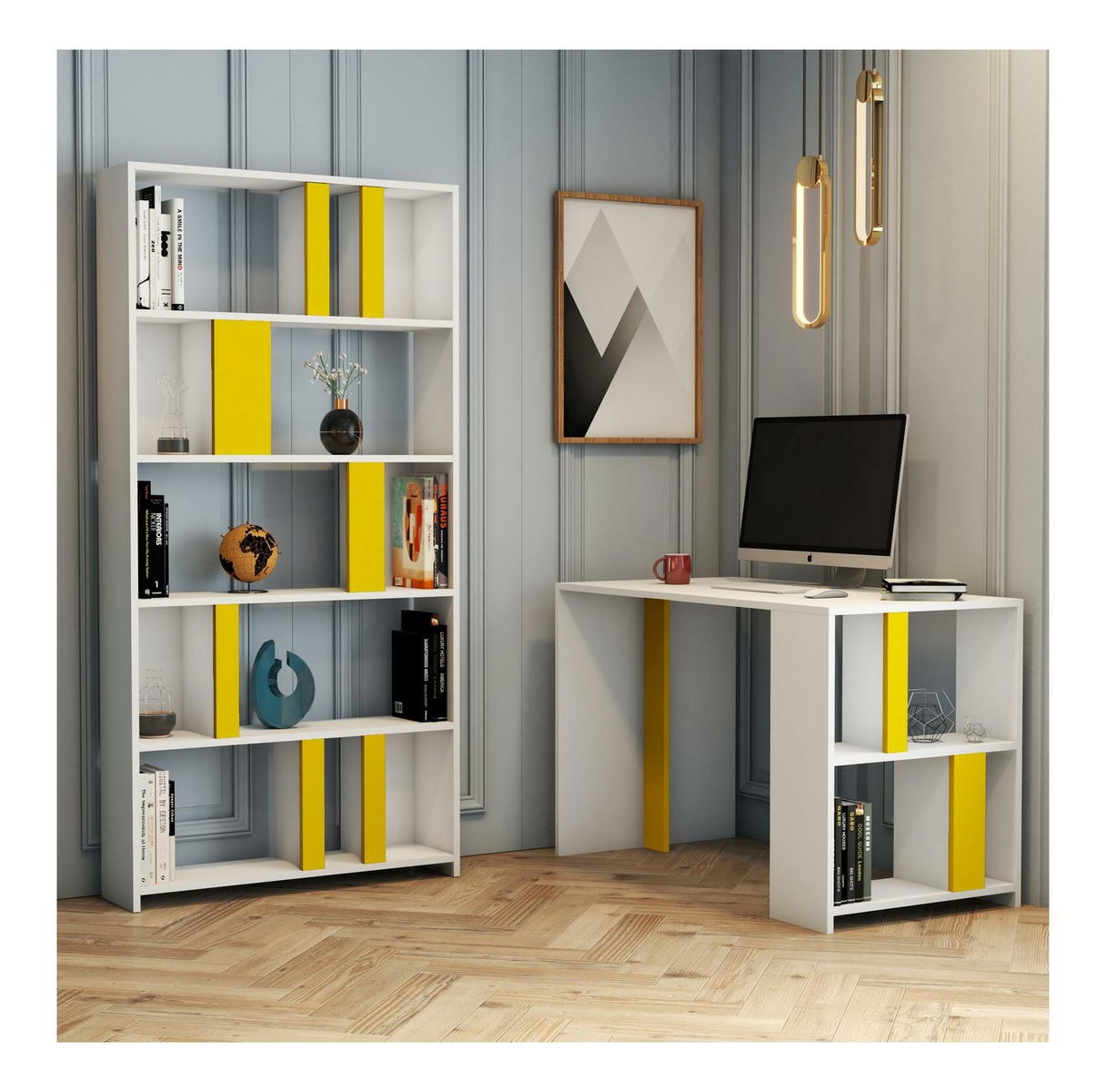 PC stolić s regalom Limba (bijela + žuta)