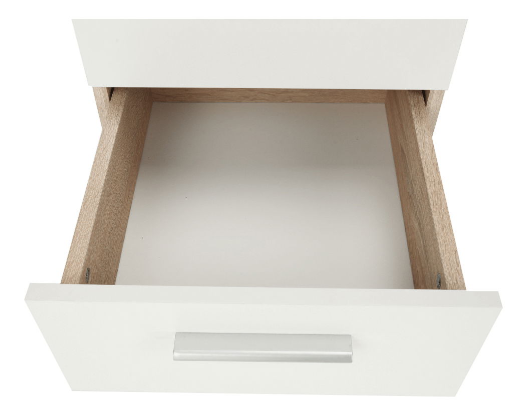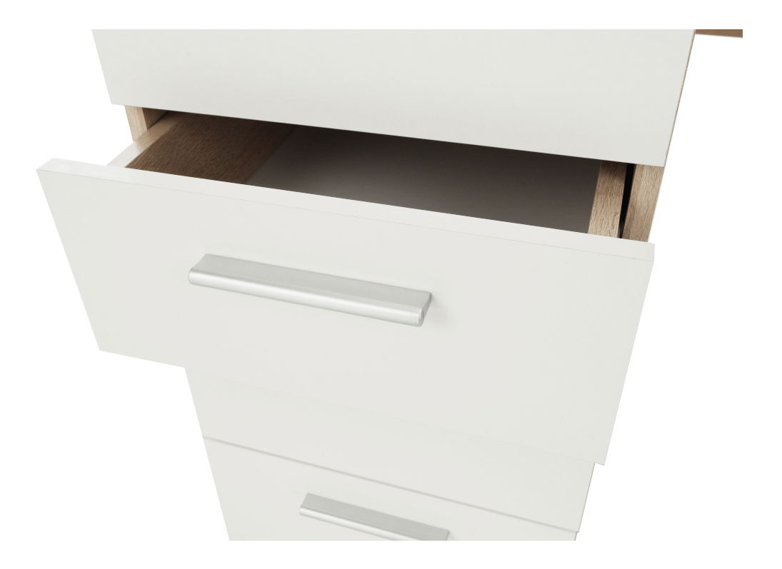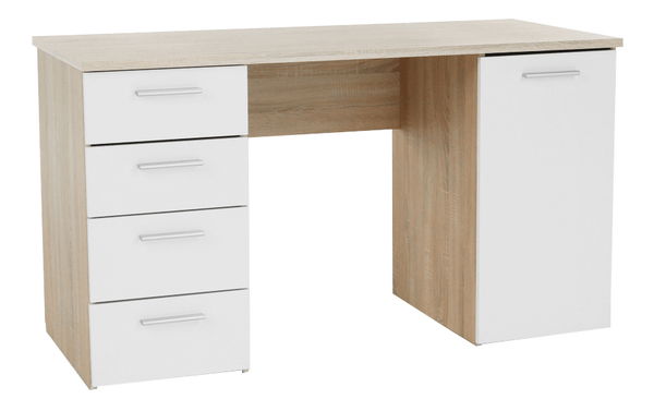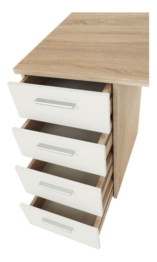 Moderan PC stolić Telur za ljubitelje modernog dizajna. Ima četiri ladice i ormarić. Isporučuje se u kombinaciji boja hrast sonoma + bijela.