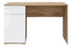 PC stol s minimalističkim, čistim dizajnom u boji wotan hrasta i sjajne bijele, će Vam olakšati učenje ili posao. Stol ima ormarić i ladicu u lijevom dijelu. Iza vrata je prostor podijeljen na dva dijela policom. Ladica i vrata imaju duguljaste ručke. Nosivost radne ploče je 15 kilograma, a unutarnje police 4 kilograma.