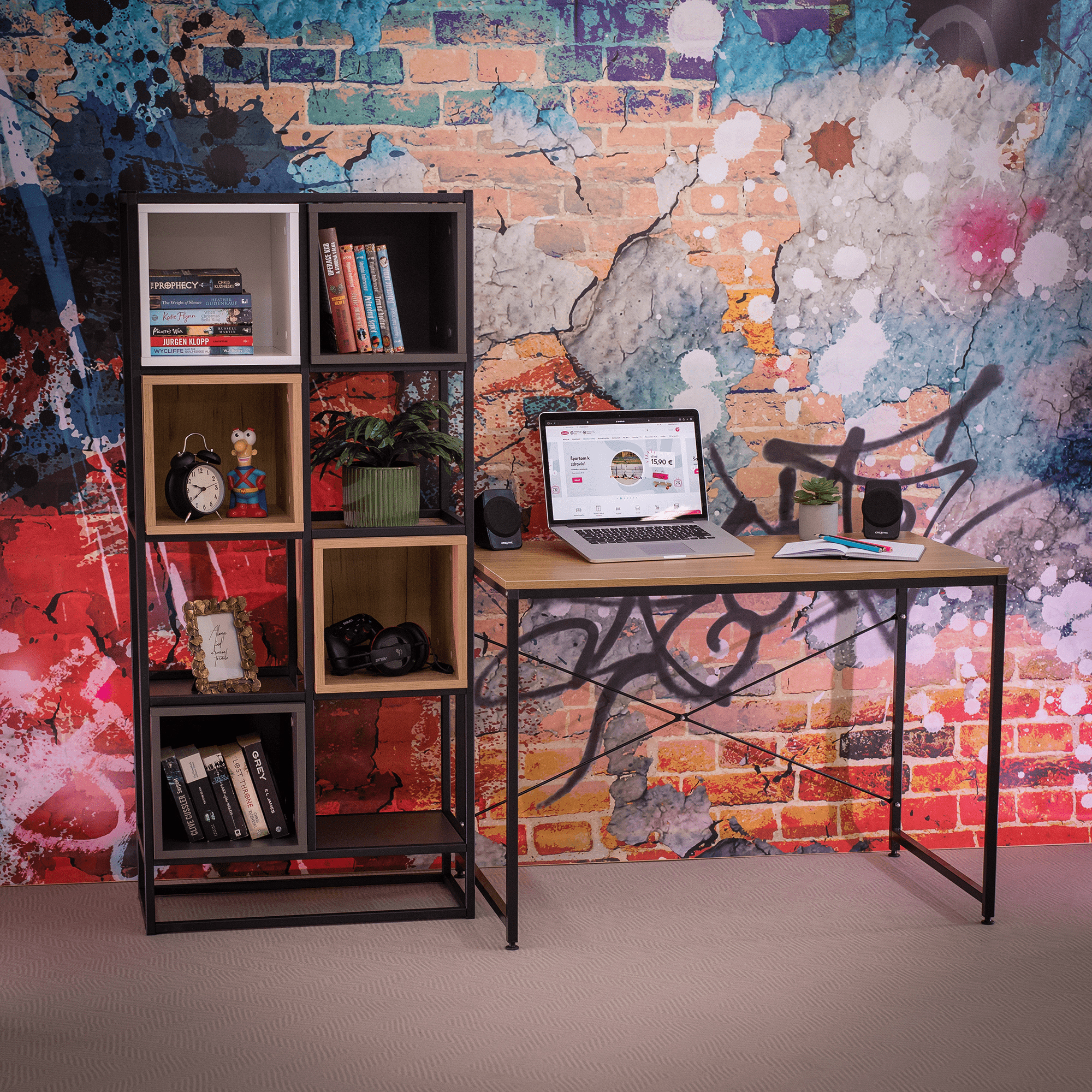 Moderan radni stol u industrijskom stilu.