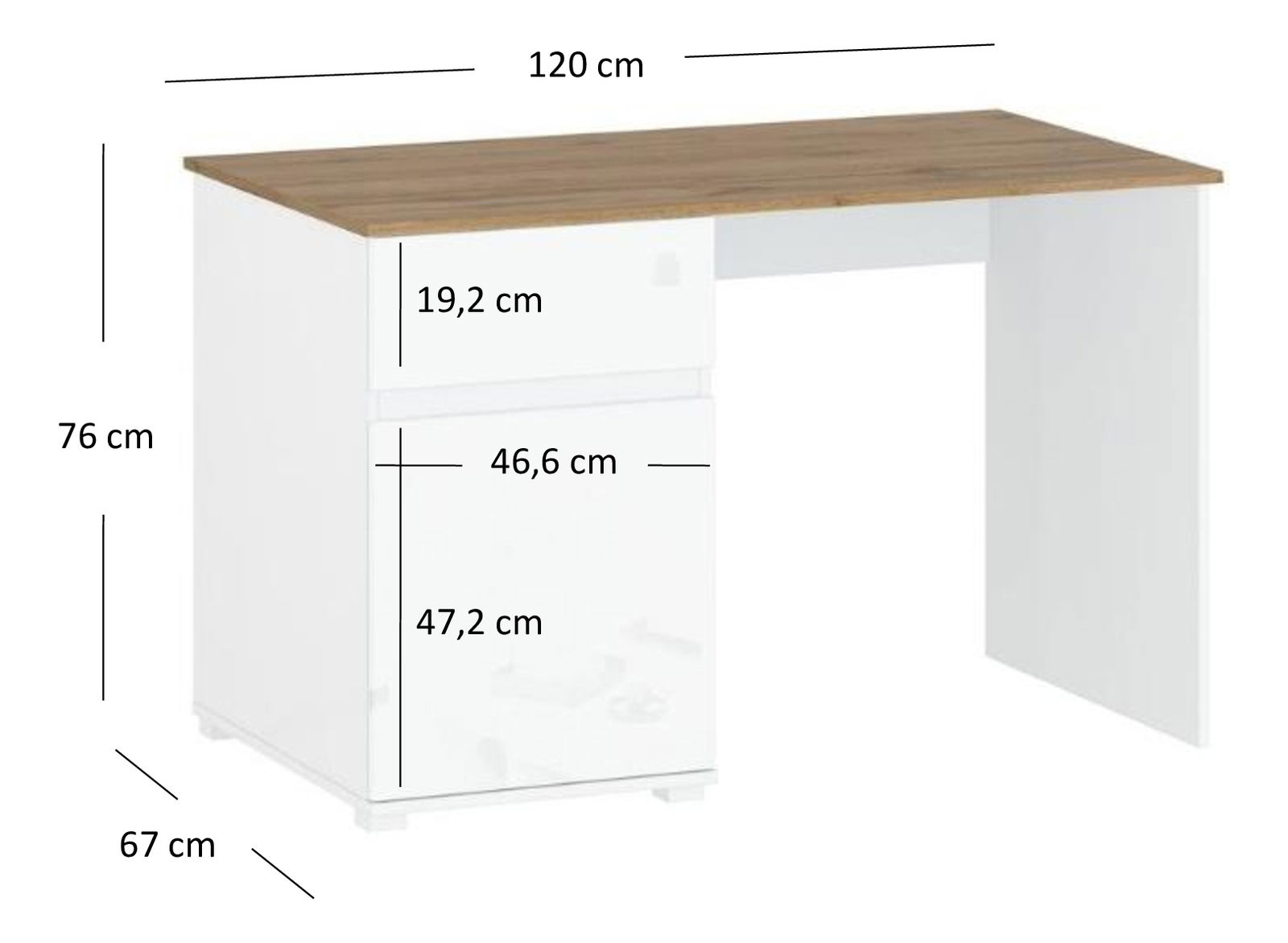 Pisaći stol Vina (bijela sjajna + hrast wotan)
