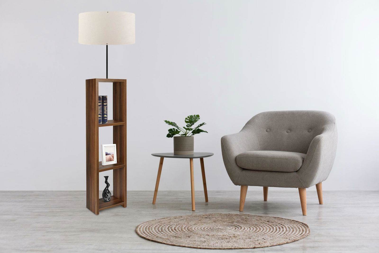 Podna svjetiljka s policama Astaresta 3 (krem + tamno drvo)