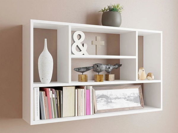 Polica Rezotio idealan je izbor za one koji traže udobnost i stil. Moderna zidna dekoracija u svom najsuvremenijem obliku – zidna polica Rezotio. Svijetla boja lako se kombinira s bilo kojom zidnom dekoracijom, a neobičan raspored unutarnjih polica naglašava dizajn cijelog prostora. Savršen je prostor za pohranu knjiga, elegantnih dodataka i dekorativnih okvira za slike koji evociraju uspomene na važne događaje. Na policu možete postaviti i teglu s biljkom ili bočicu mirisa za dom. Dimenzije: širina: 100 cm, visina: 60 cm, dubina: 20 cm. Izvedba: laminirana iverica debljine 16 mm, papirnati rub. Jamstvo: 24 mjeseca.