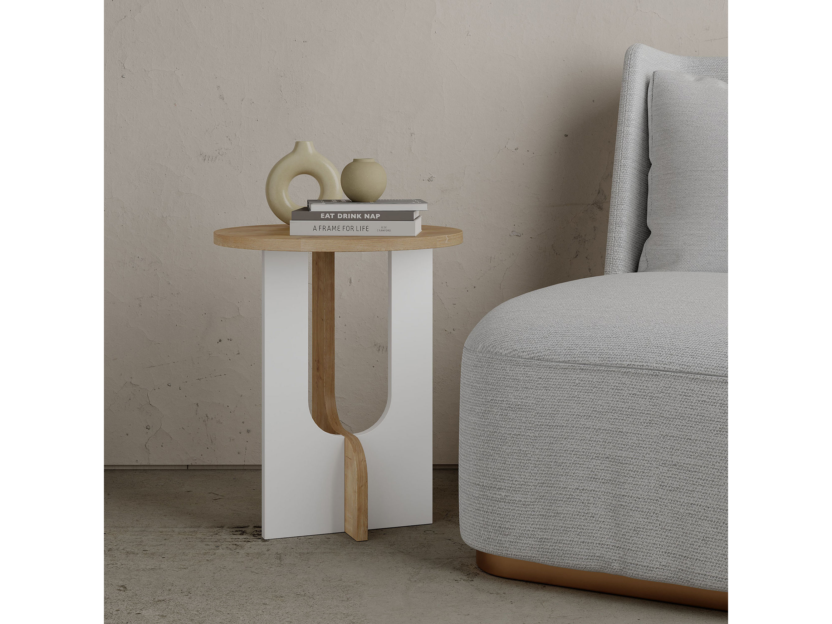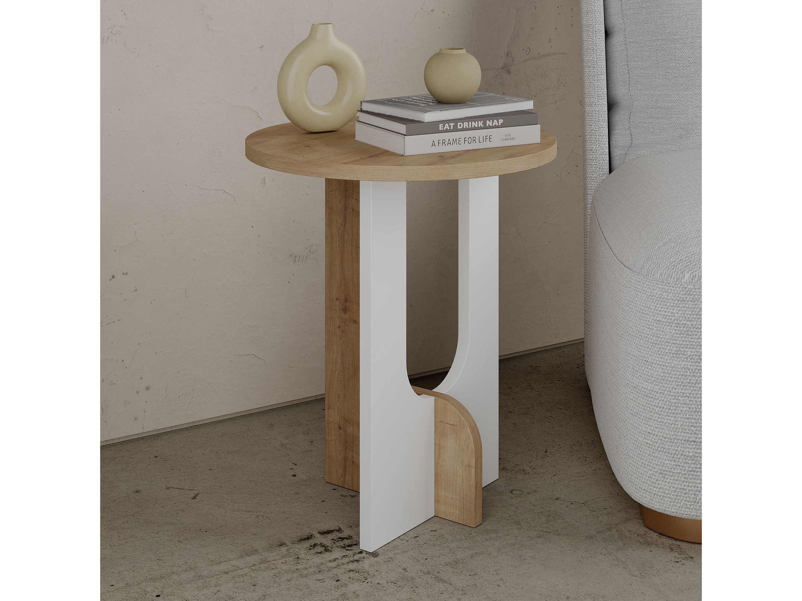 Pomoćni stolić Luna (hrast + bijela)
