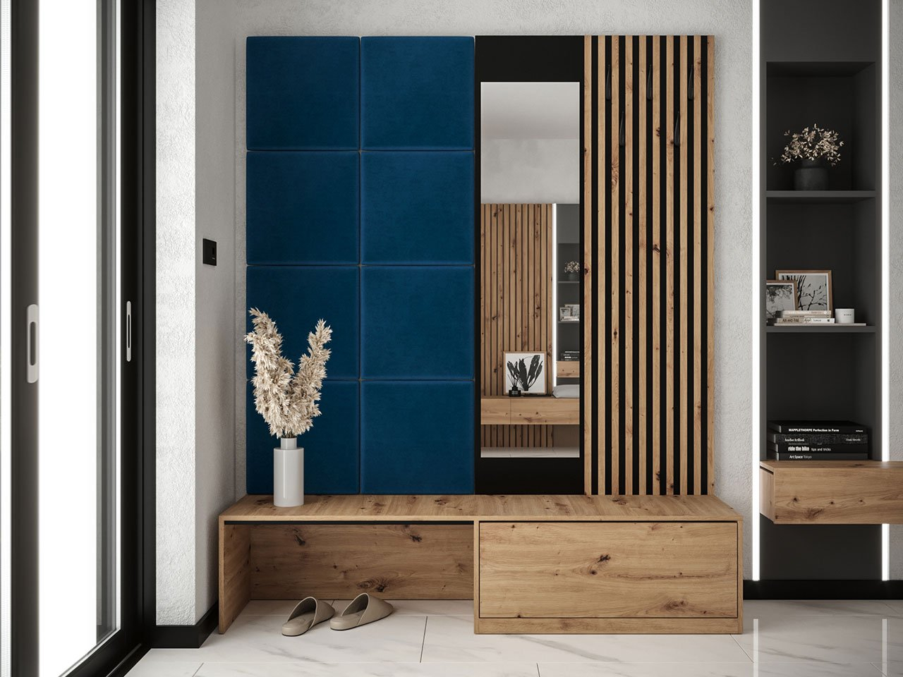 Predsoblje Anrolat I (hrast artisan + crna + plava) (s ogledalom)