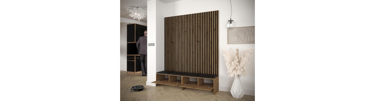 Predsoblje Esmaldos V (hrast artisan + crna + plava)