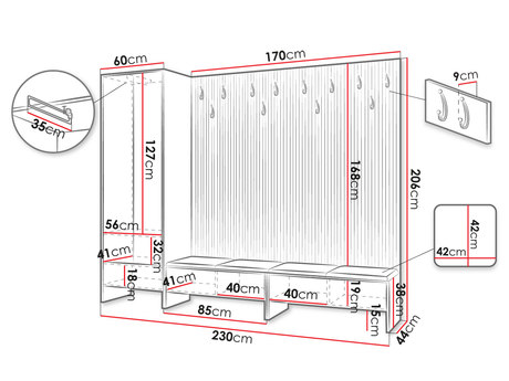 Predsoblje Esmaldos VI (hrast artisan + crna + smeđa)