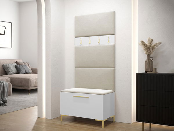 PrikazSet za predsoblje je idealan izbor za one koji traže udobnost i stil. Set za predsoblje Frunofta III – savršeno rješenje za svako predsoblje! Posebno dobro će poslužiti u uskim prostorijama i u stambenim zgradama. Ne zauzima puno mjesta, a nudi mnogo mogućnosti. Veliku pažnju zaslužuje i sam izgled. Ima jednostavan, elegantan oblik i možete odabrati boju tkanina i samog namještaja. Tako možete namještaj prilagoditi vlastitim potrebama! Loft ili možda nešto moderno? Izbor je na vama! Predsoblje se odlikuje stilskim i modernim tapeciranim panelima. Pružaju udobno mjesto za obuvanje cipela i izgledaju fenomenalno! Sami po sebi predstavljaju veliku dekoraciju predsoblja. Osim toga, Frunofta III sadrži četiri vješalice i ormarić za obuću. Nevjerojatno je prostrana, stane puno cipela i papuča za goste! Sve to uz minimalno zauzimanje prostora. Dimenzije: ormarić za obuću Frunofta: širina: 84 cm, visina: 52 cm, dubina: 46 cm. Stalak za odjeću Frunofta 84: širina: 84 cm, visina: 16 cm. Tapecirani panel Pag 84x42: x4 širina: 84 cm, visina: 42 cm, dubina: 4 cm. Izvedba namještaja od tvrdog drva: 16 mm debela laminirana ploča, stražnja strana od HDF ploče, rubovi završeni izdržljivim 0,5 mm PVC furnirom otpornim na svakodnevnu upotrebu, plastične noge u zlatnoj (bijeli i crni namještaj) ili crnoj boji (hrastov namještaj), ravne šarke, vješalica sadrži 4 kukice. Izvedba tapeciranog panela: materijal: podloga panela 8 mm debela ploča + 3 cm debela pjena T18 + tkanina, oblik: pravokutan, 3D efekt, štiti zidove od oštećenja, zvučna izolacija, upotreba: unutarnja, paneli idealni za dovršetak zidova. Jamstvo: 24 mjeseca.