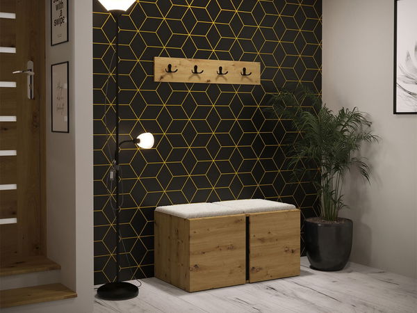 Predsoblje Tavasz VI idealan je izbor za one koji traže udobnost i stil. Set za predsoblje s klupom Tavasz VI savršeno je rješenje za male prostore. Kompaktni ormarić za cipele i praktična vješalica za odjeću organizirat će prostor u hodniku i pritom poslužiti kao dekorativni element. Ormarić za cipele ima mekano i udobno sjedalo od tapeciranih panela – presvučeno kvalitetnom tkaninom iz kolekcije Manila, ugodnom na dodir i otpornom na sunčeve zrake. Prostrano i elegantno predsoblje Tavasz VI dostupno je u mnogim bojama, što omogućuje savršeno usklađivanje s vašim interijerom. Dimenzije: ormarić za cipele: širina: 84 cm, visina: 42 cm, dubina: 46 cm, vješalica: širina: 84 cm, visina: 16 cm, dubina: 4,6 cm, tapecirani panel Pag 42x42: x2 širina: 42 cm, visina: 42 cm, dubina: 4 cm. Dizajn ormarića: 16 mm debela laminirana iverica, rubovi zaštićeni 0,5 mm PVC furnirom otpornim na svakodnevnu uporabu, bez ručki, plastične noge, obične šarke, vješalica sadrži 4 dvostruke kuke. Dizajn tapeciranog panela: osnova panela: 8 mm ploča + 3 cm pjena T18 + tkanina, oblik: kvadratni, 3D efekt, štiti zidove od oštećenja, apsorbira zvuk. Namjena: interijer, paneli idealni za zidnu dekoraciju. Ormarići su univerzalni pa ih je moguće montirati prema želji – lijevo ili desno. Ljepilo za panele nije uključeno. Jamstvo: 24 mjeseca.