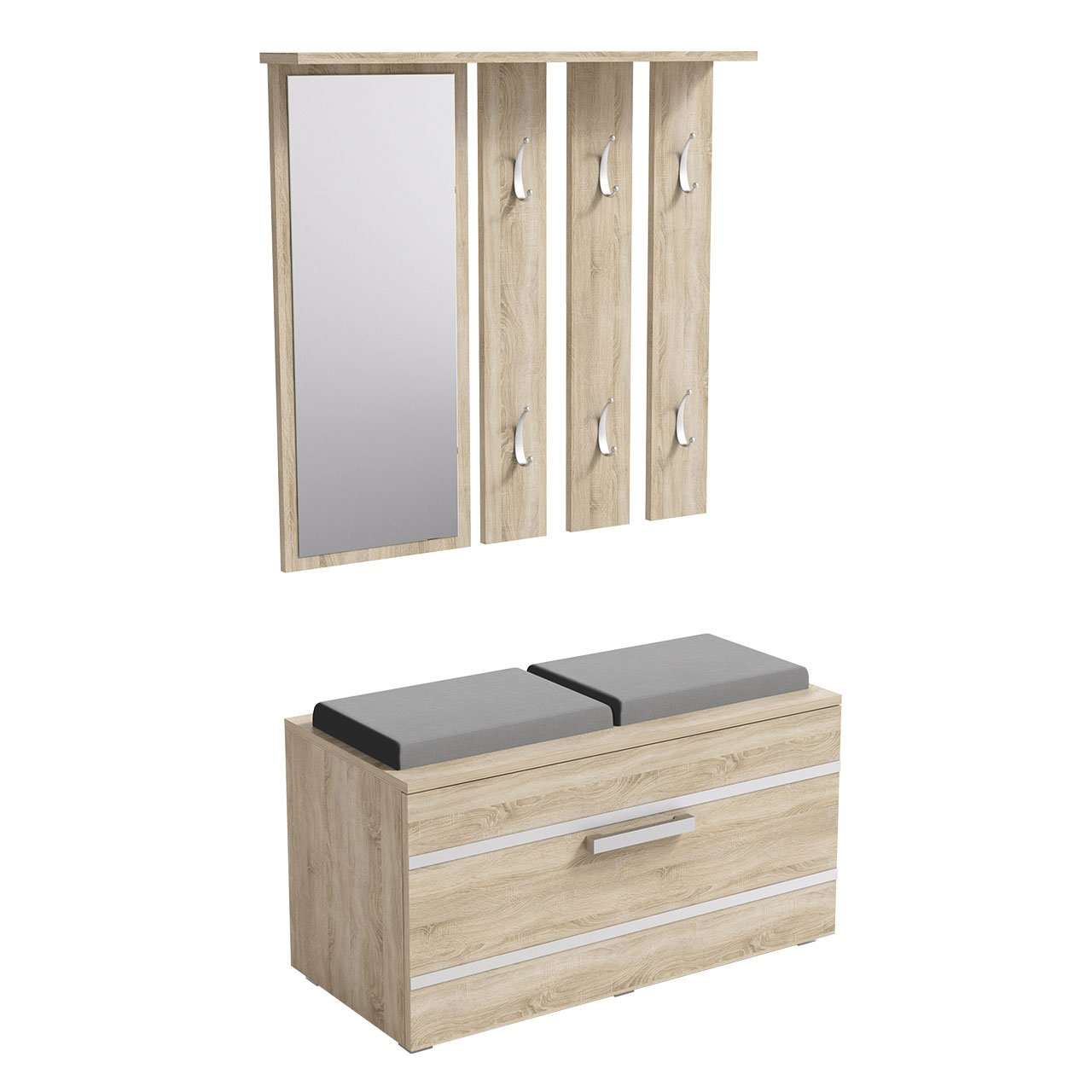 Kombinacija je prostranog ormarića za cipele i panela na koji su postavljene vješalice. Namještaj je izrađen od visokokvalitetnih materijala i obložen izdržljivim PVC rubom. Ogledalo kao sastavni element ormara u hodniku je veliko i bit će ne samo praktičan dodatak, već i ukras. Prigušene boje i elegantan dizajn.
