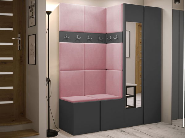 Predsoblje Tovenaz XII (grafit + ružičasta) (s ogledalom)