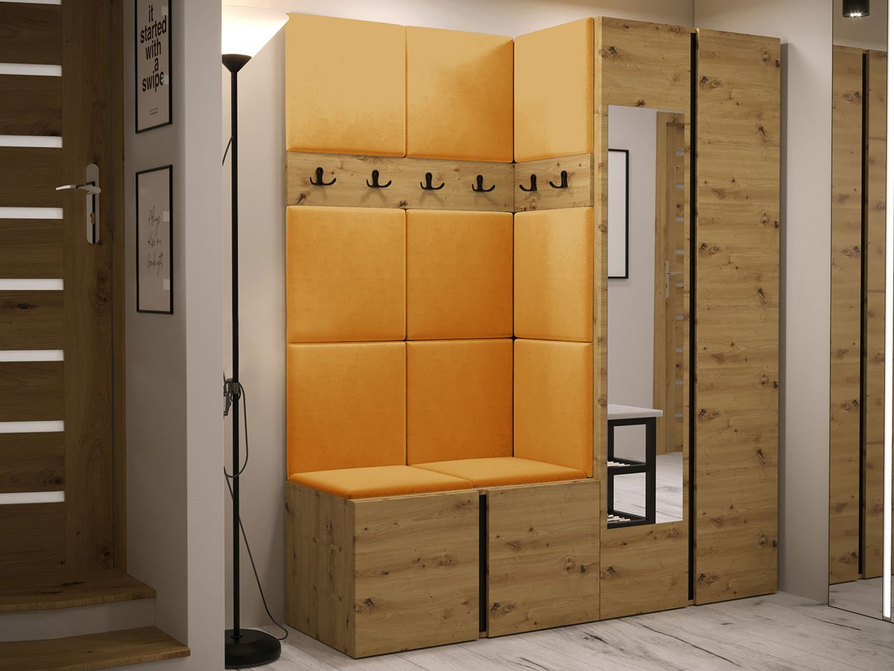 Predsoblje Tovenaz XII (hrast artisan + crna + žuta) (s ogledalom)