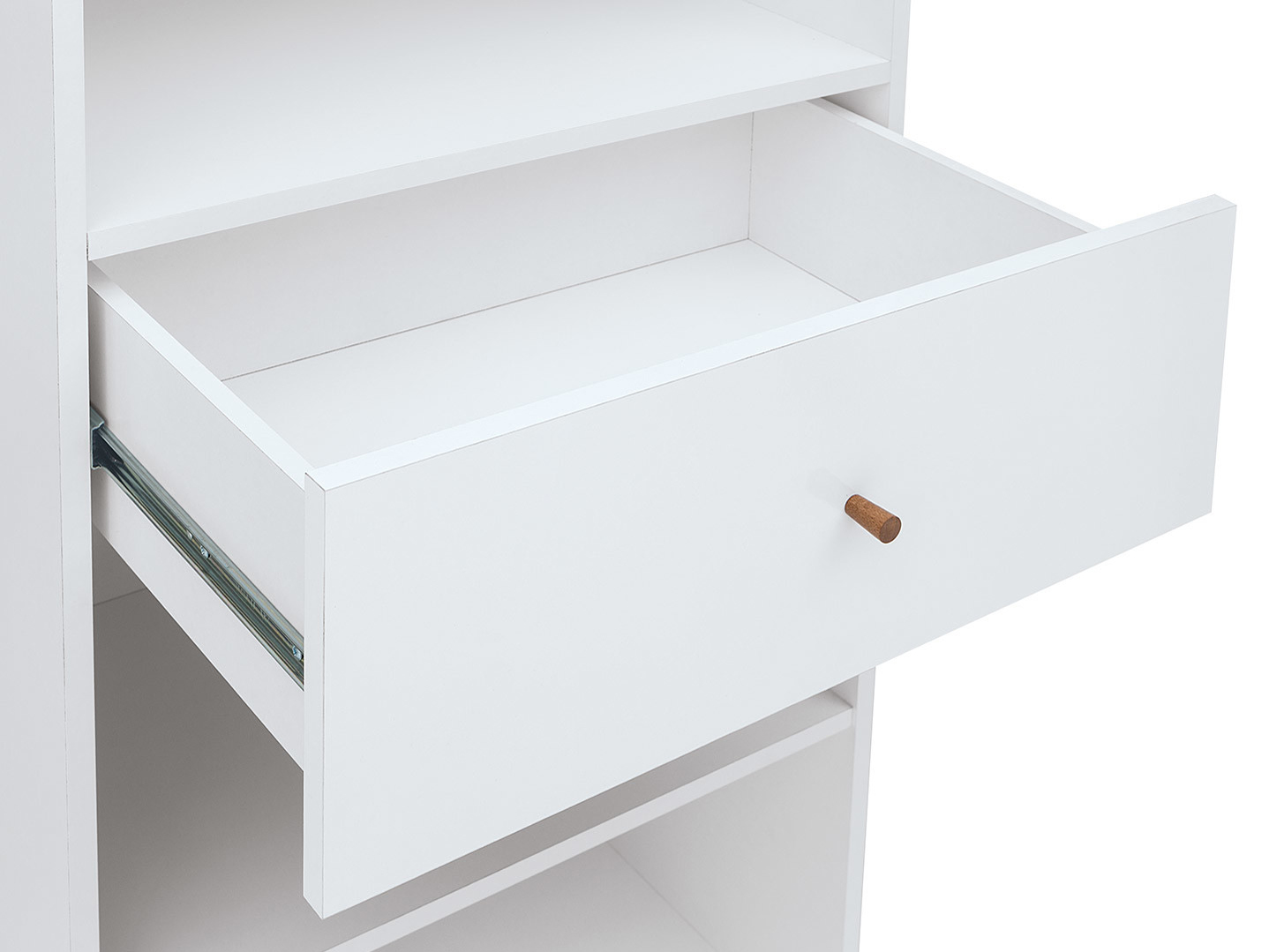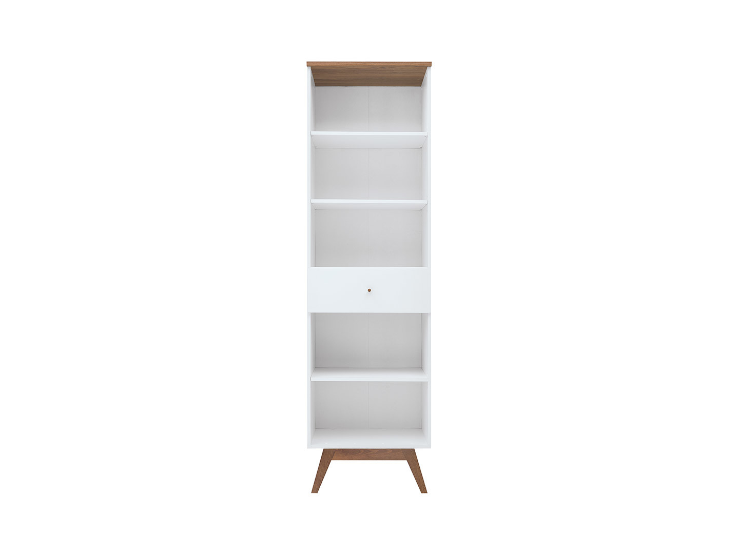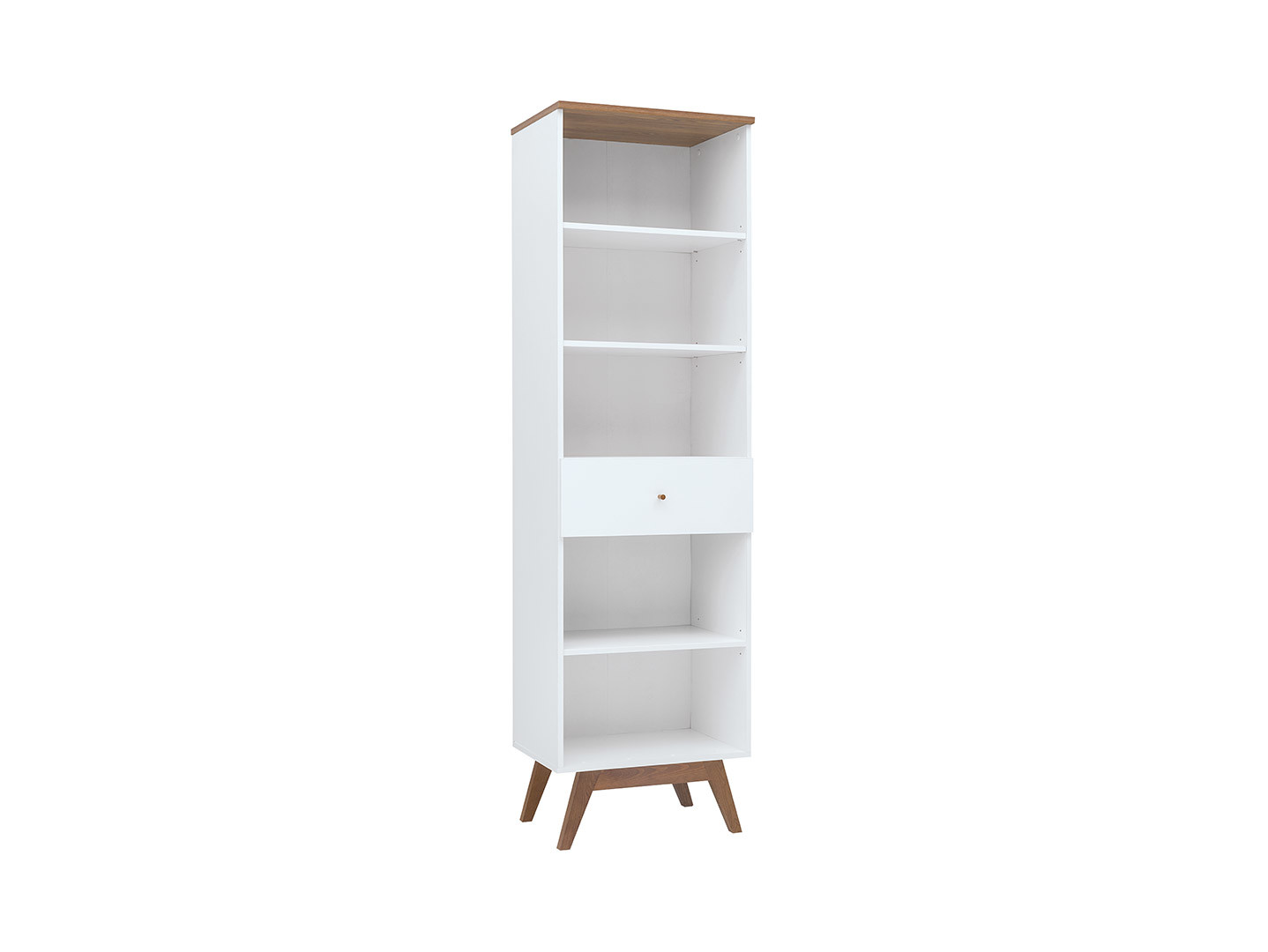 Visoki regal s 5 otvorenih polica i jednom manjom ladicom.