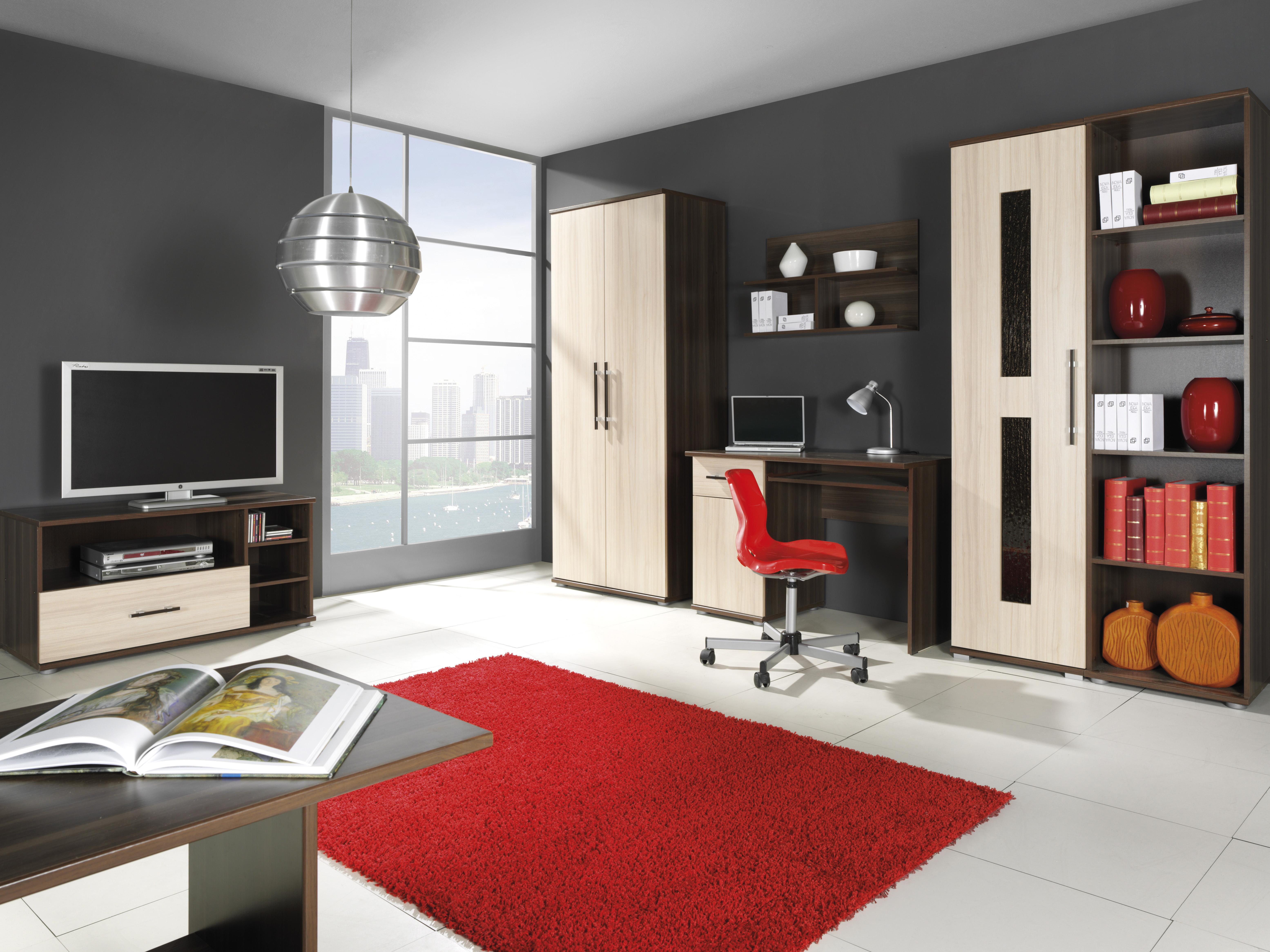 Linija namještaja jednostavnog i modernog dizajna u bojama jasena i tamnog jasena.