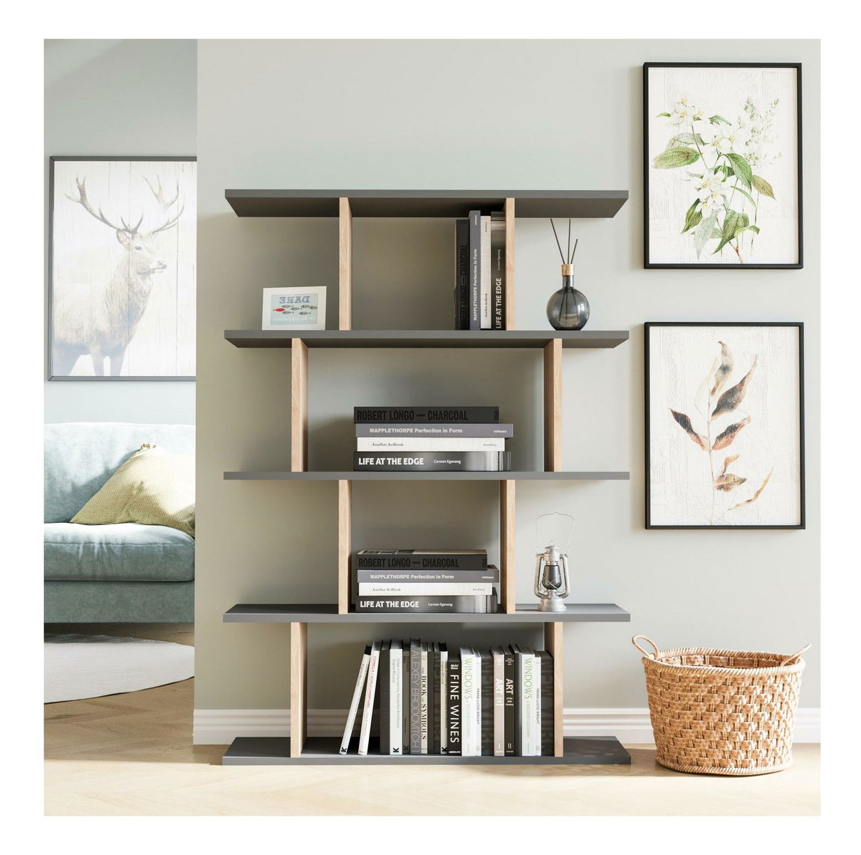 Regal Makiso 1 (antracit + hrast)