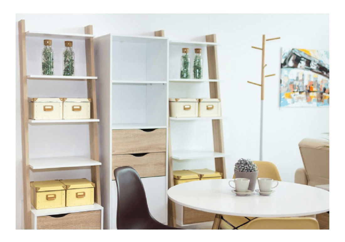 Praktičan regal za ljubitelje retro dizajna. Ima četiri police i jednu ladicu. Dolazi u kombinaciji bijele boje i hrasta sonome.