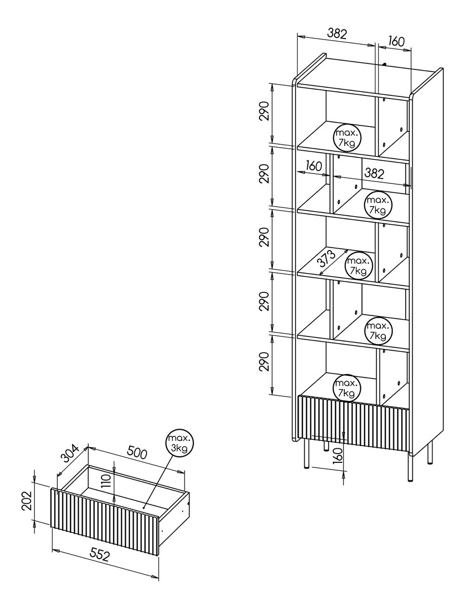 Stražnja strana namještaja i dno ladice izrađeni su od HDF ploče debljine 2,5 mm.