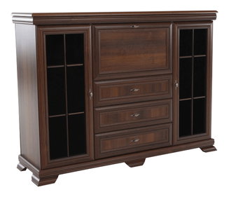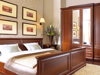Kauči, kreveti ili fotelje uglavnom su presvučeni kožom ili njenom imitacijom. Kao stolić odaberite klasiku u masivnom dizajnu. Pozornost treba obratiti i na lampe koje bi trebale opisivati luksuz. Osnovni materijal za njih je metal, staklo i tekstil. Lampe su velike su, ukrašene lukovima, a kod lampi na stalku i sam stalak je dekorativan.