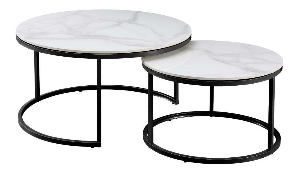 Set stolića za kavu (2 kom.) Lastras (mramor bijeli + čelik crna)