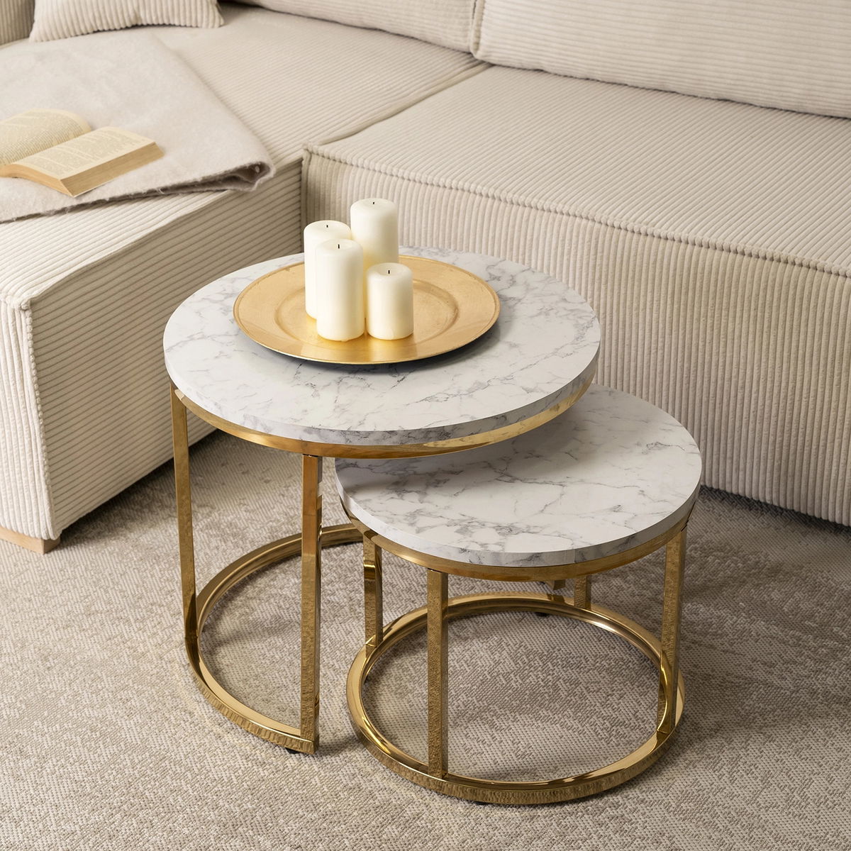 Set stolića za kavu (2 kom.) Oponia (mramor + zlatna)
