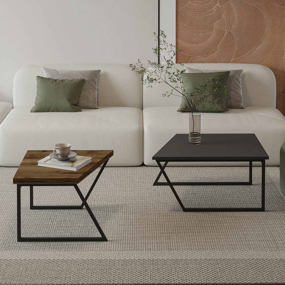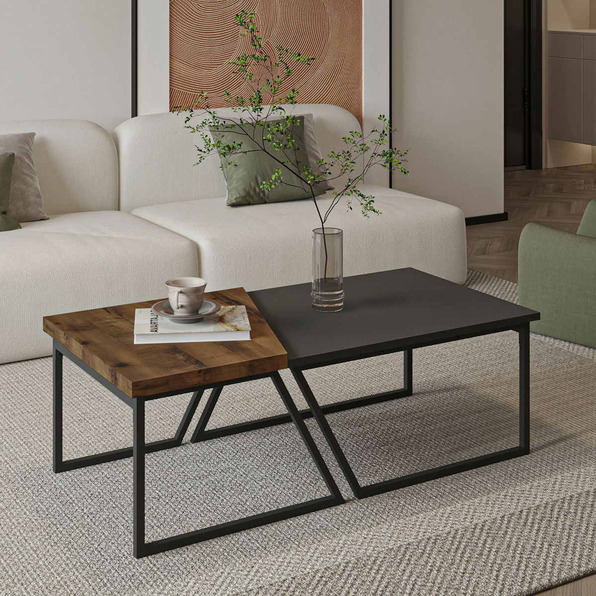 Set stolića za kavu Veronico (antracit + rustikalni orah)