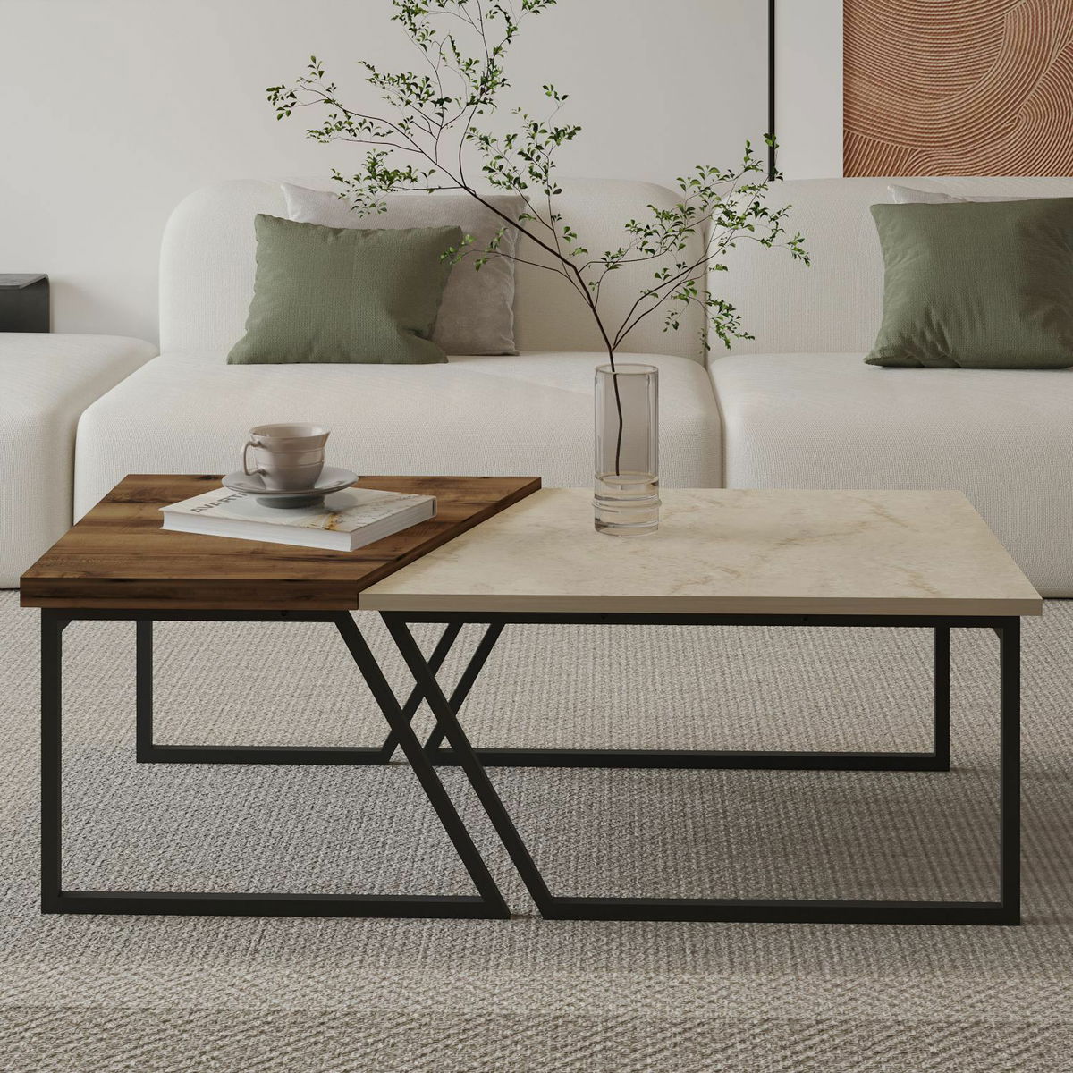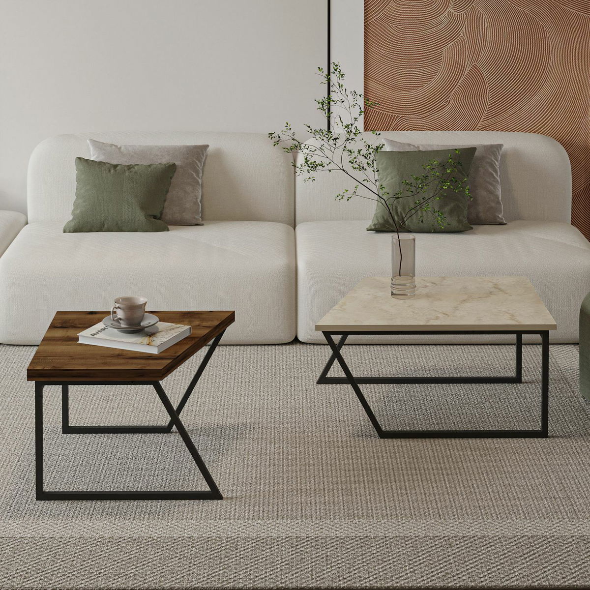 Set stolića za kavu Veronico (travertin + rustikalni orah)