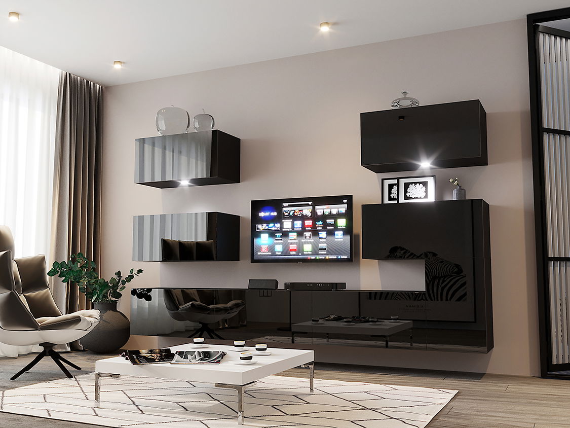 Set za dnevni boravak Berny 60 (crna + crni sjaj)