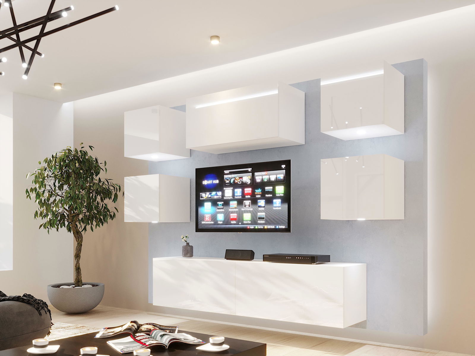 Set za dnevni boravak Berny 64 (bijela + bijeli sjaj)