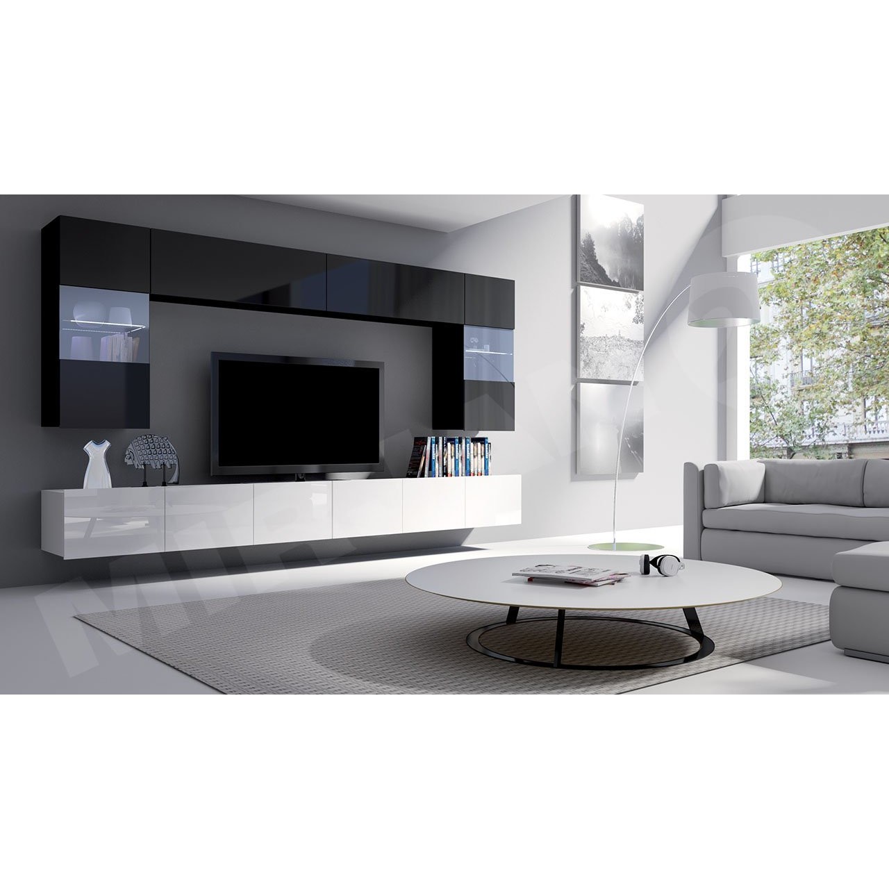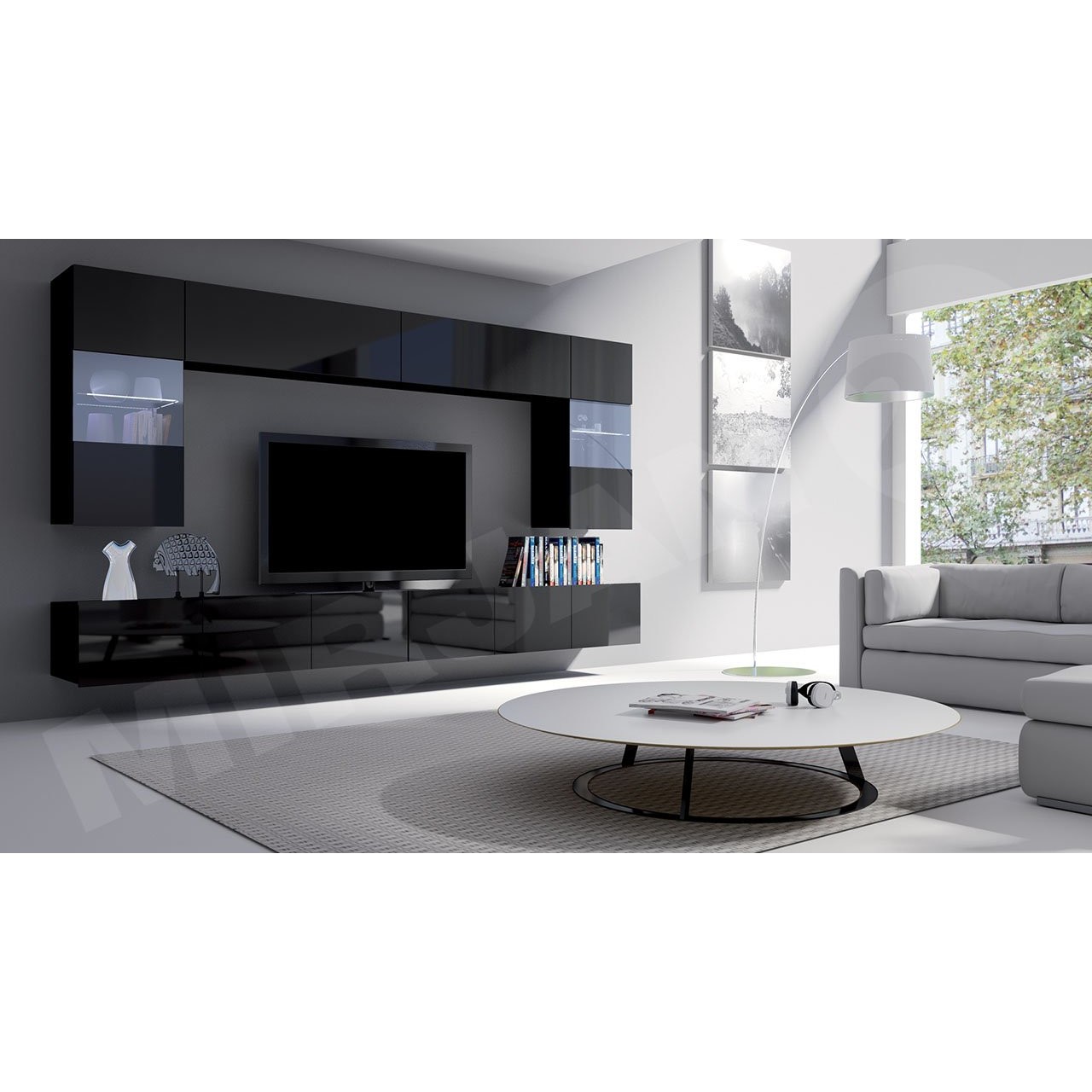 Set za dnevni boravak Brolani I (crna + crni sjaj) (s plavom LED rasvjetom)