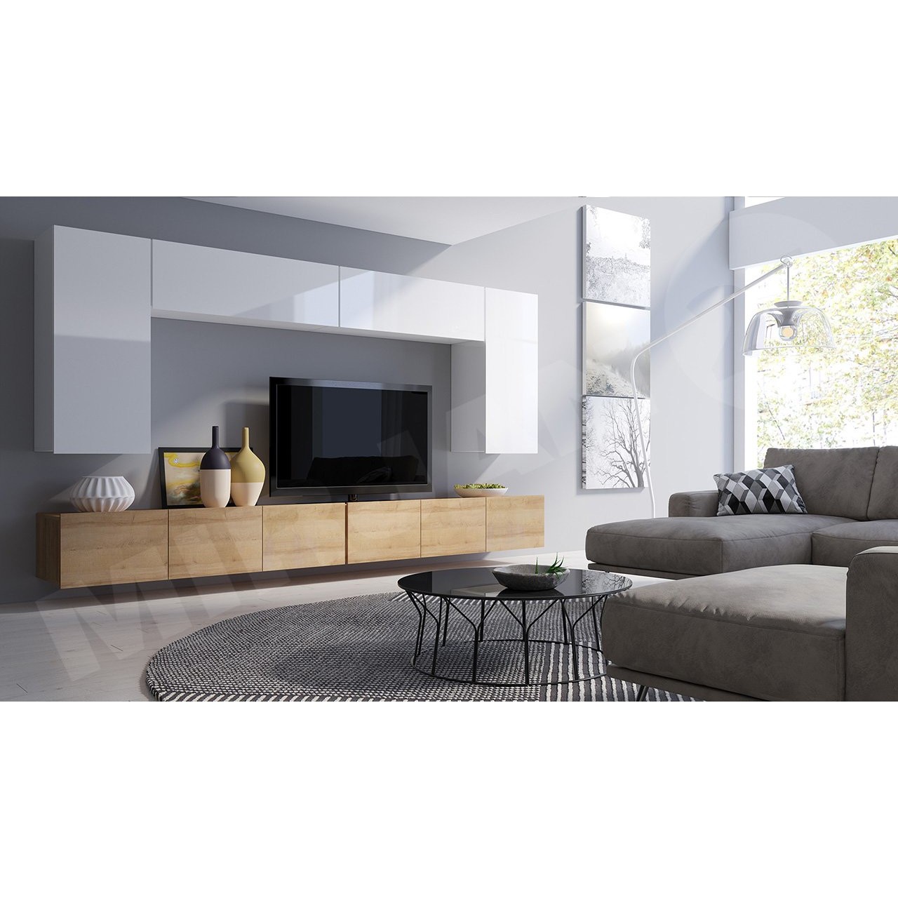 Set za dnevni boravak Brolani XIII (hrast zlatni + bijela + bijeli sjaj)