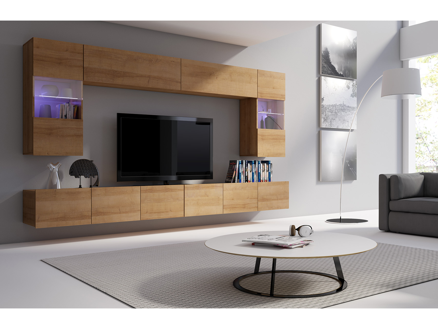 Set za dnevni boravak Calabria C1 (hrast zlatni) (bez rasvjete)