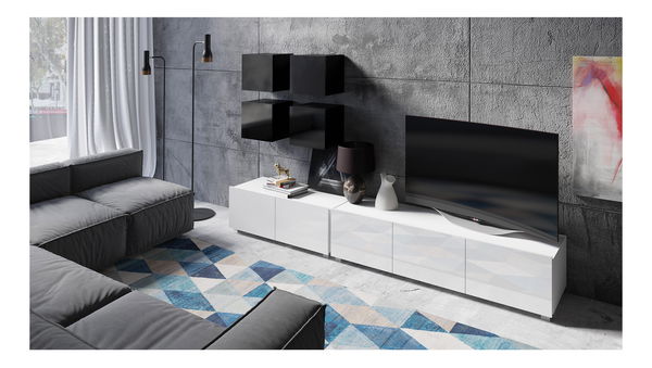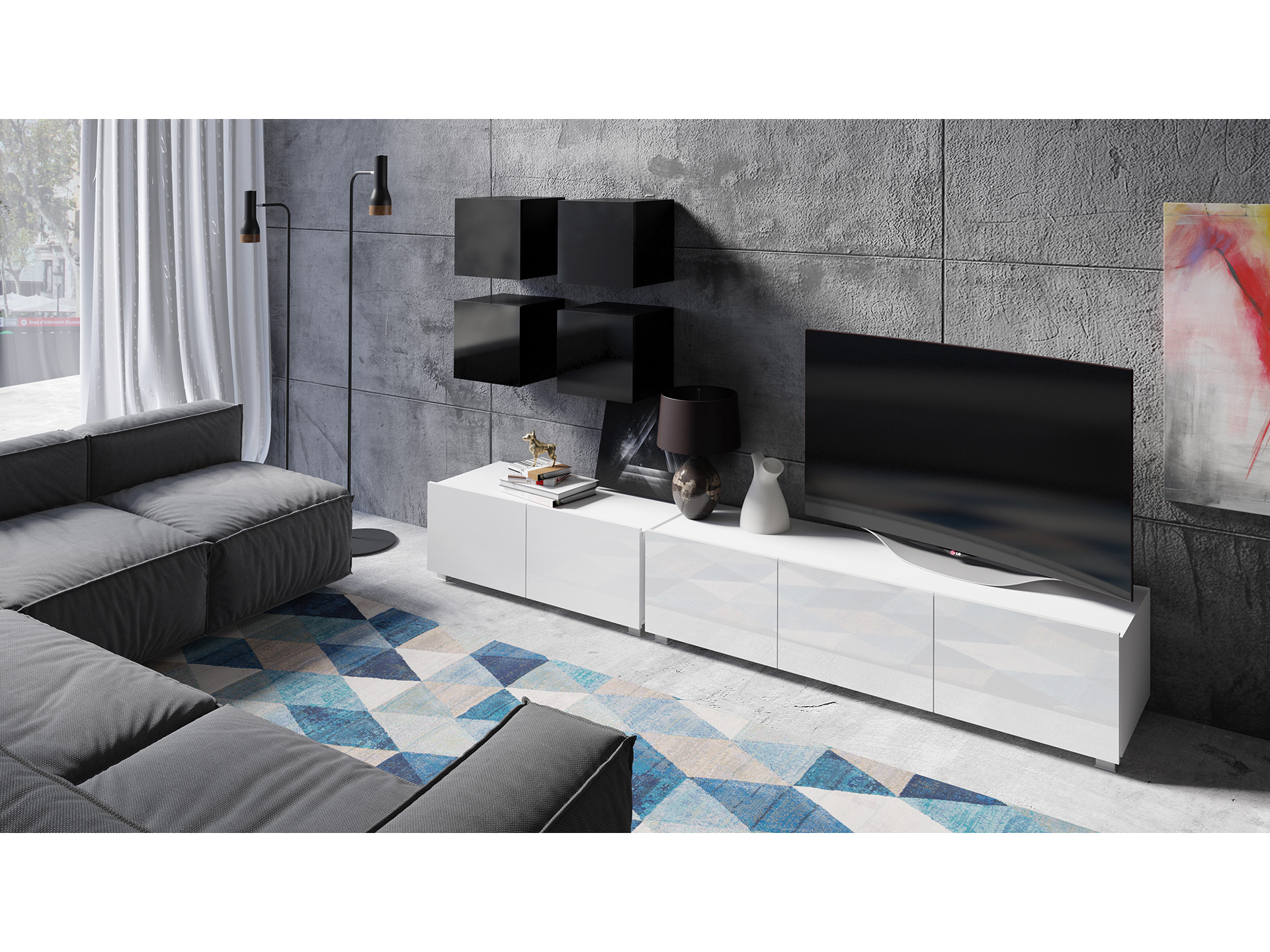 Set za dnevni boravak sastoji se od 6 elemenata: 1x TV stolić RTV 150, 1x TV stolić RTV 100 a 4x zidni ormarić KWADRAT.