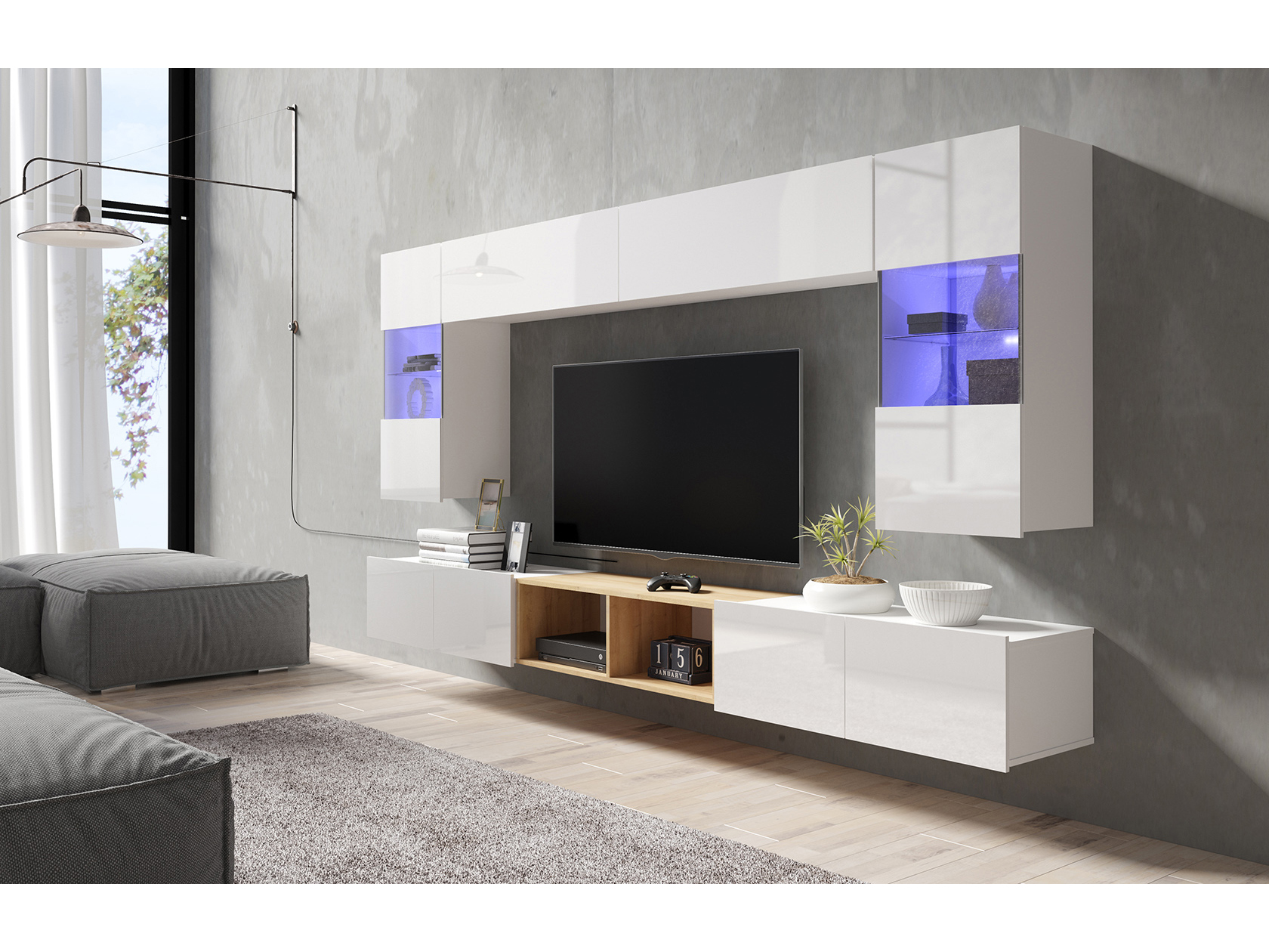 Set za dnevni boravak Calabria C24 WHITE (bijela + hrast zlatni) (bez rasvjete)