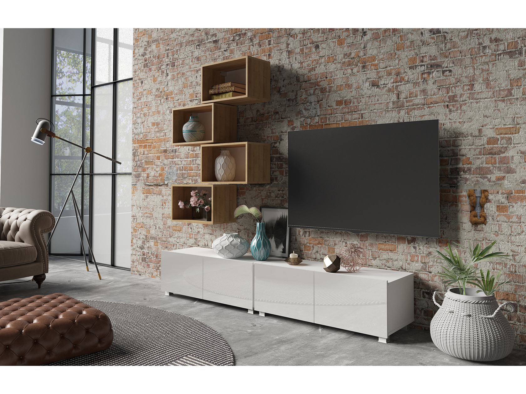 Set za dnevni boravak sastoji se od 6 elemenata: 2x TV stolić RTV 100 a 4x viseća polica P50.