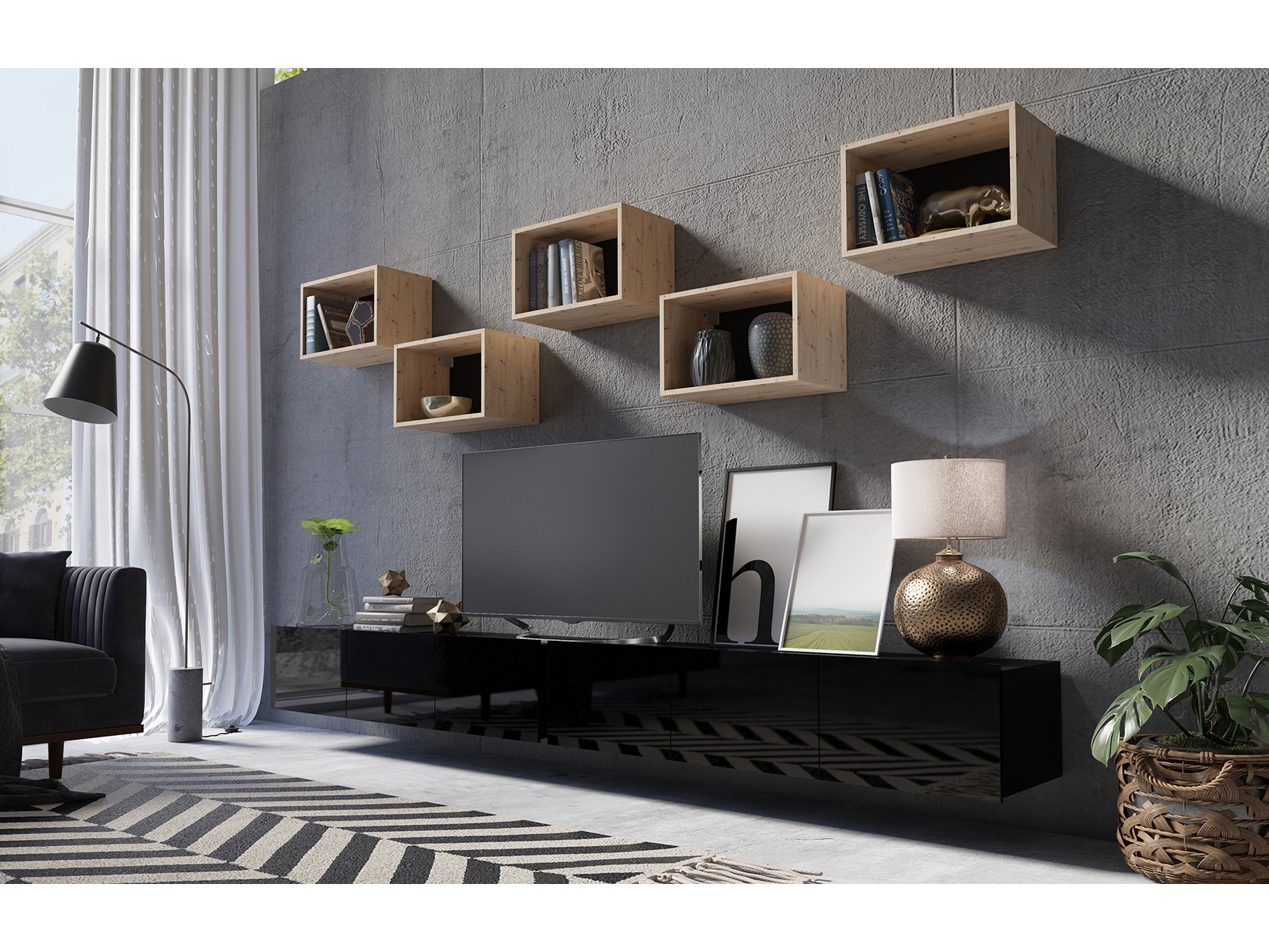 Set za dnevni boravak sastoji se od 7 elemenata: 2x TV stolić RTV 150 a 5x viseća polica P50.