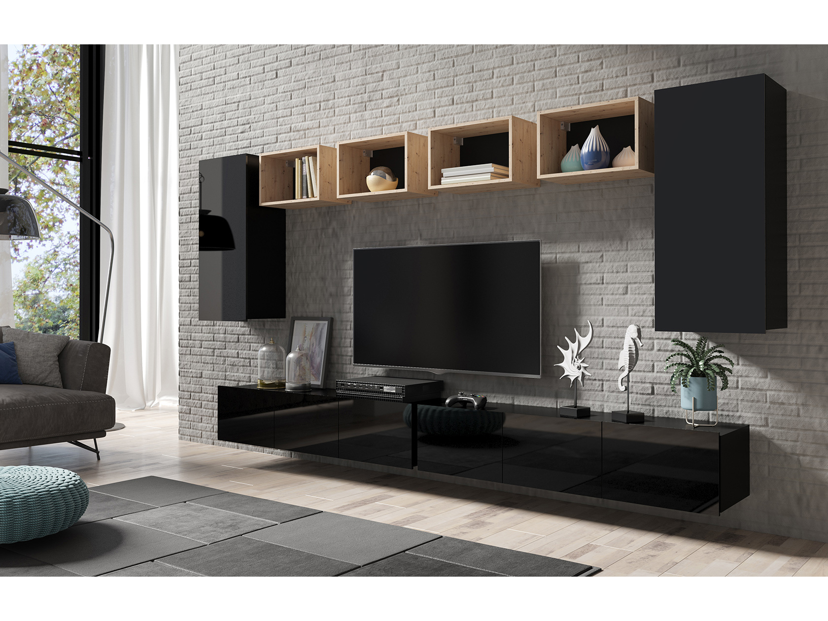 Set za dnevni boravak Calabria C35 BLACK (crna + hrast artisan) (bez rasvjete)